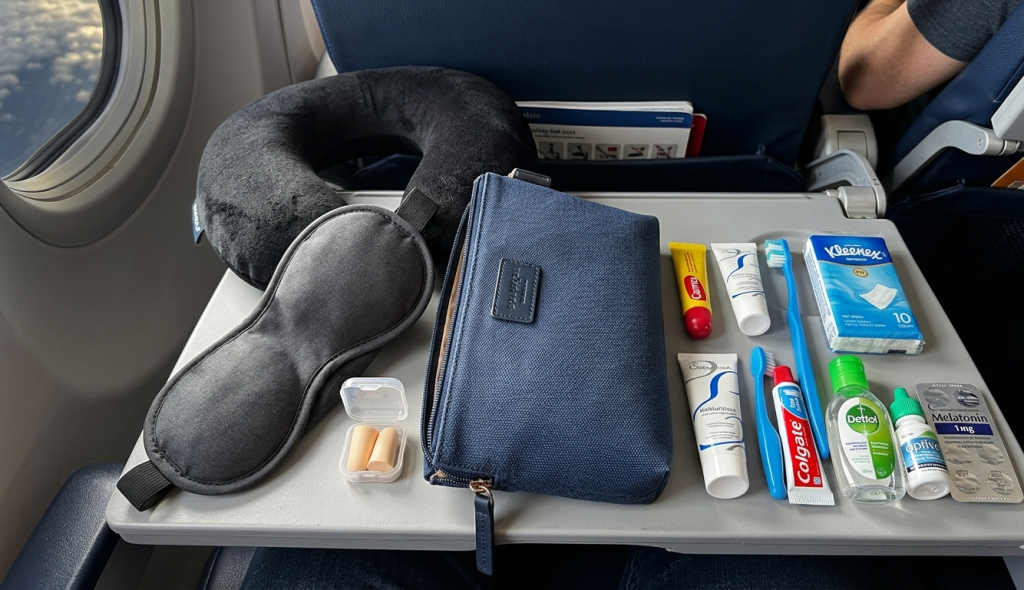 Ένα μικρό νεσεσέρ ή τσαντάκι με τα απαραίτητα θα σου λύσουν τα χέρια (άσχετα να πολλές αεροπορικές σου το προσφέρουν). Εμείς πάντα έχουμε μαζί: